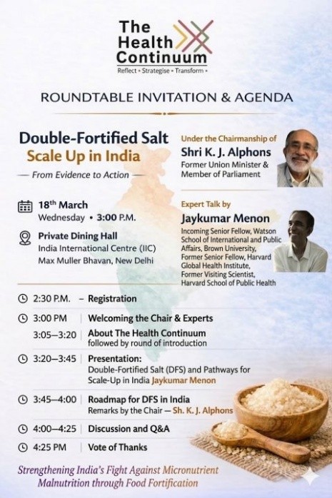 In 4 days, we will convene policymakers, researchers, and development partners for a Roundtable on “Double Fortified Salt – Scale Up in India” to discuss evidence, implementation experiences, and pathways for scaling DFS in India.